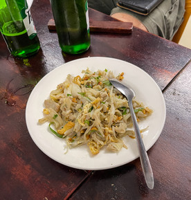 Die Familie füttert uns mit fantastischen Mahlzeiten. Mittags gibt es einen großen gebratenen Fisch, Tilapia. Uns wird gezeigt, wie man diesen Fisch isst: Man wickelt gebratene Fischstücke mit Kräutern, Salaten und anderen Zutaten in Reispapier ein. Danach gibt es wie üblich verschiedene Gerichte, darunter Gemüsesuppe, Reis und Gemüse und zum Abschluss eine Auswahl an frischem Obst.